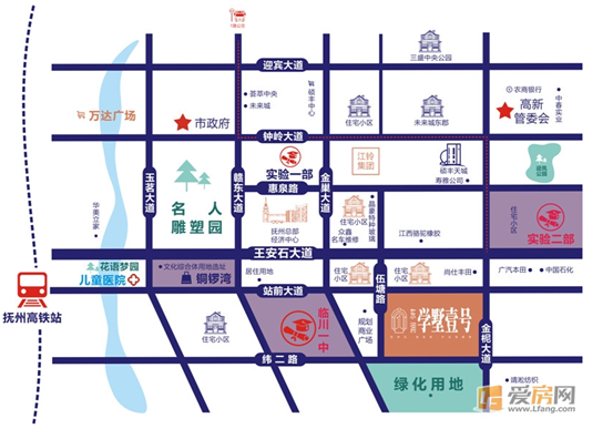 售樓地址 站前大道與金巢大道交匯處(實(shí)驗(yàn)學(xué)校二部、新臨川一中旁)交通圖
