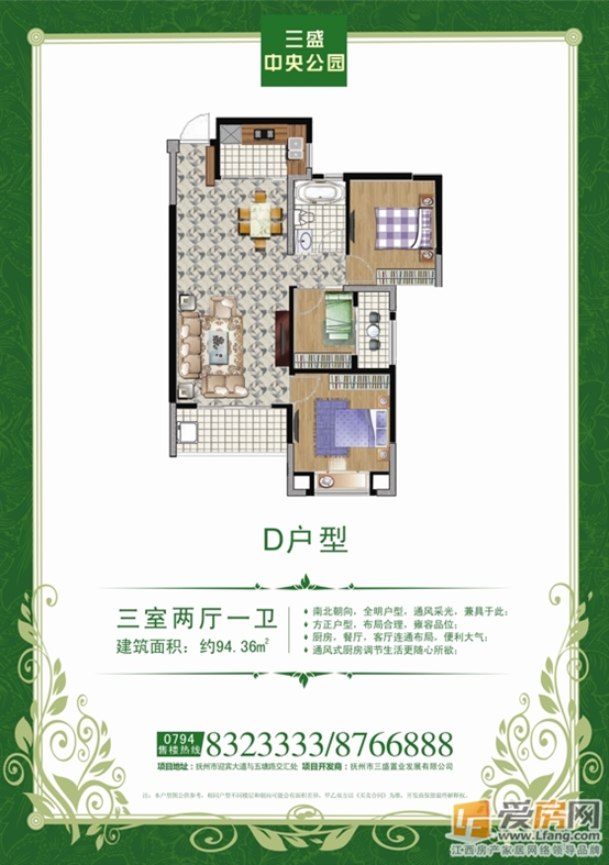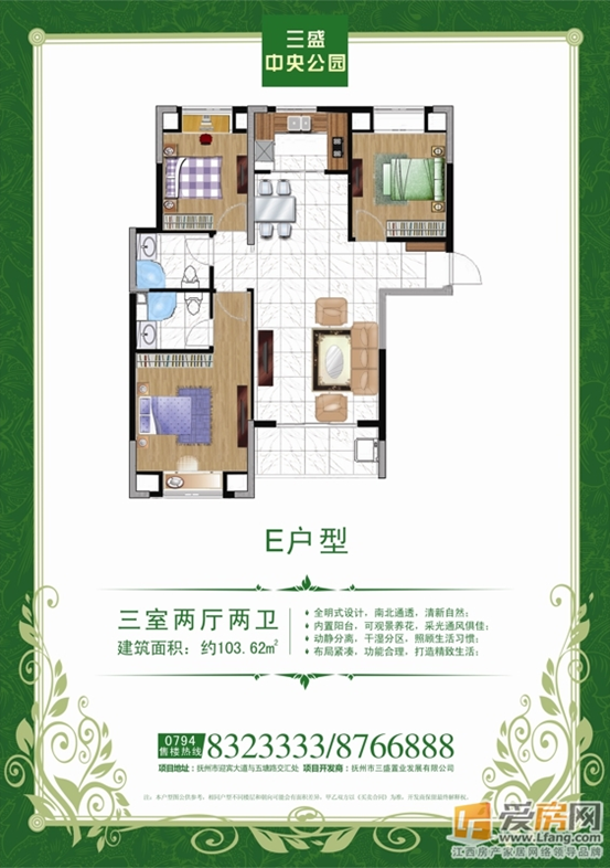 【忠科•三盛中央公園】整個小區(qū)建筑采用的是時尚高層設計,屬全框架剪力墻結構,這種框剪結構的房子質量好,抗震級別高,建筑質量更有保障,我們共推出了1#、3#、6#、7#樓,戶型設計新穎、面積合理、南北通透,采用純三房設計,面積從93到120平方米。