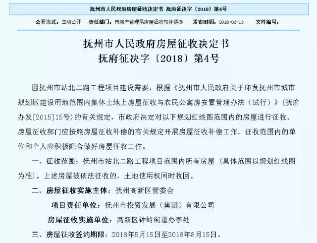 撫州市人民政府房屋征收公告