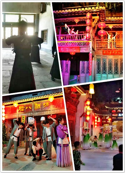 7月下旬開始,逍遙谷對外試營業(yè),員工們很幸運的趕上了逍遙谷的演出。一個個緊湊而又精彩的節(jié)目接連上演: 民間絕技(這一身功夫了得?。⒒硌荩ǖ沽⑸先ツ闶亲畎舻茫。?、花魁選婿(你們在干什么呢?這么多人拿出相機在拍)、傘舞(最是那一低頭的溫柔)、六扇門點兵(六扇門點兵多多益善)......