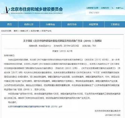 北京市建委發(fā)布《北京市綠色建筑和裝配式建筑適用技術(shù)推廣目錄(2019)》